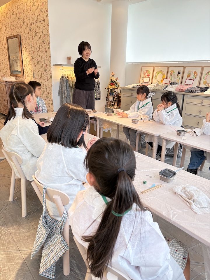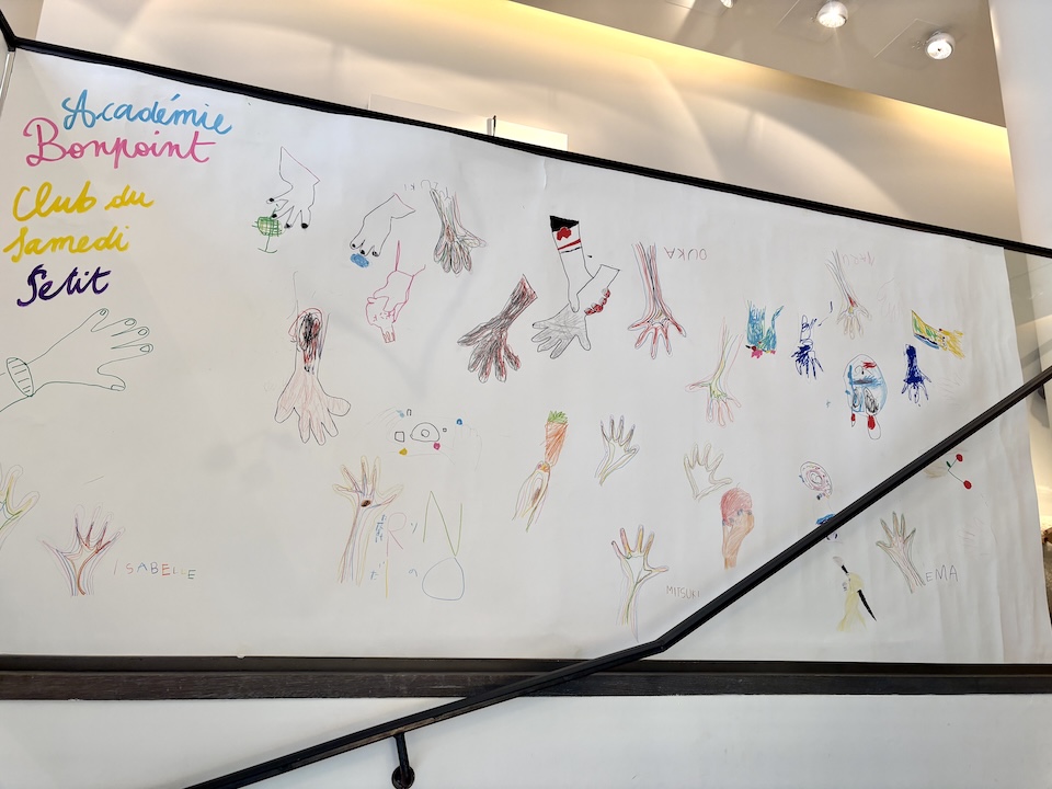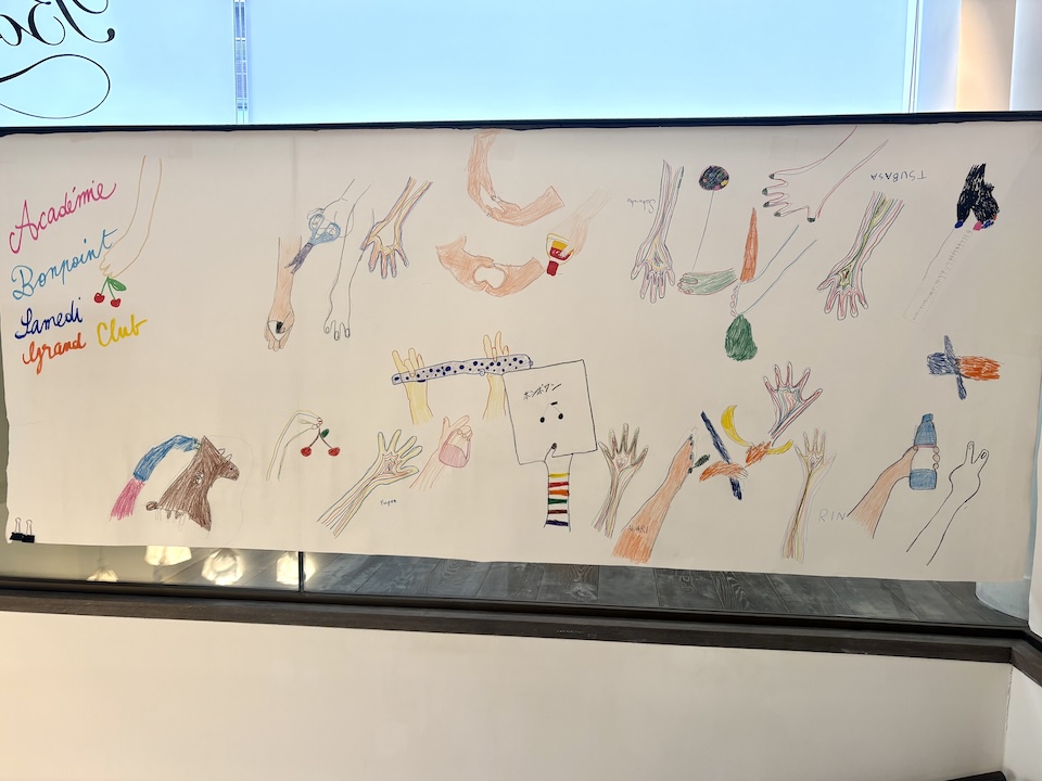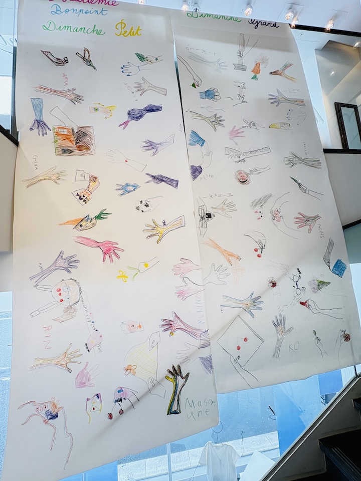 またブティックのエントランスでは1月に皆で描いた大きな"手"の作品も展示。2メートル以上ある作品の出来栄え
