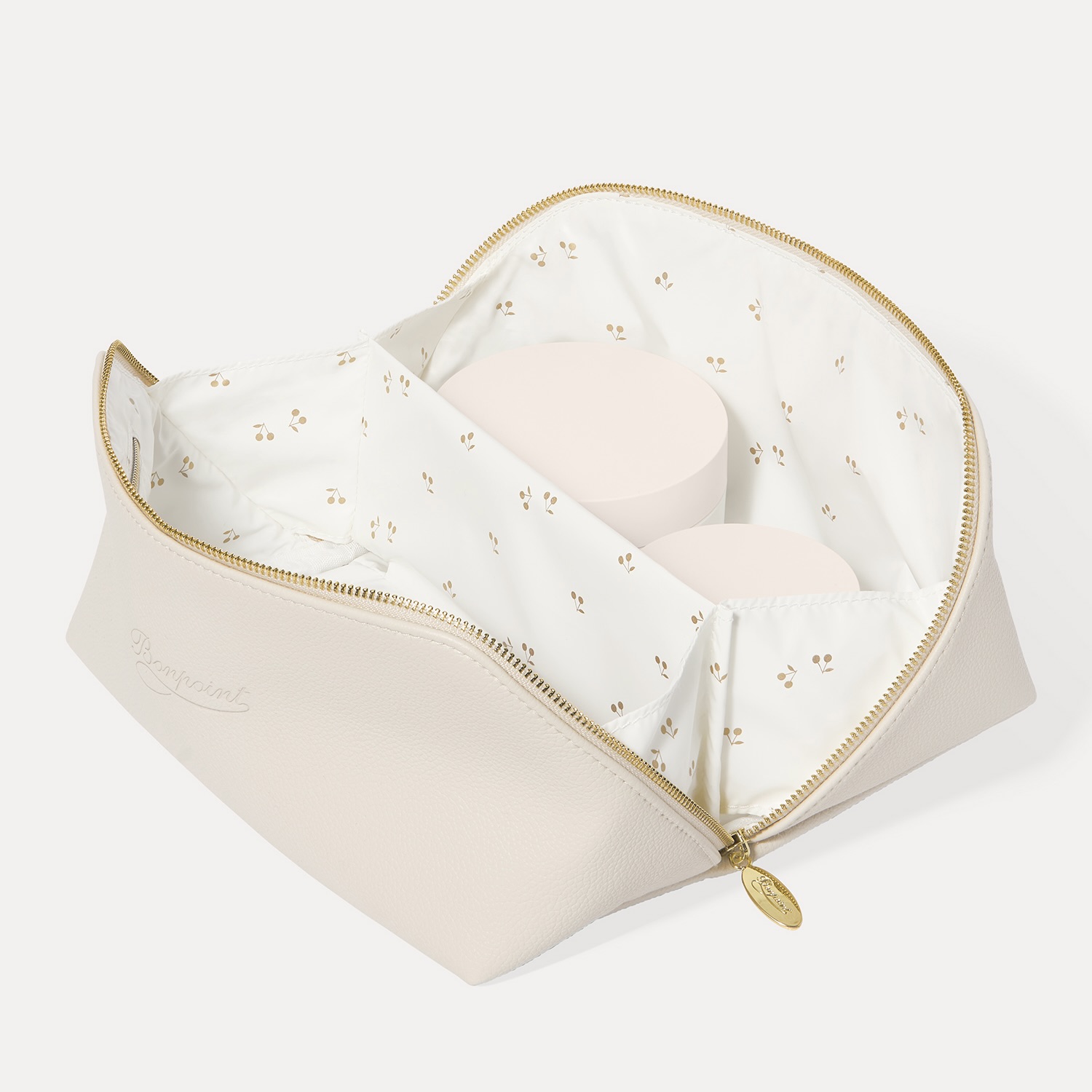 会場では27,500円(税込)以上のショッピングでオリジナルポーチをプレゼントいたします。インナーには、中身をきれいに保てるゴム仕切りのポケット付き。
