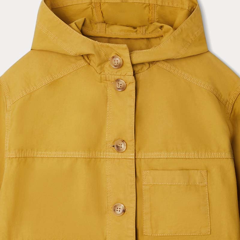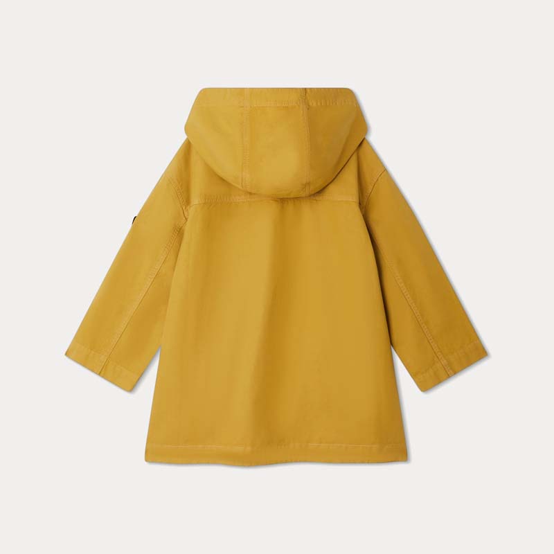 ルーズフィットでユニークなスタイルのジャケット。撥水加工を施した生地とフードを組み合わせた無地のデザインで、お子さまを暖かく保ちます。