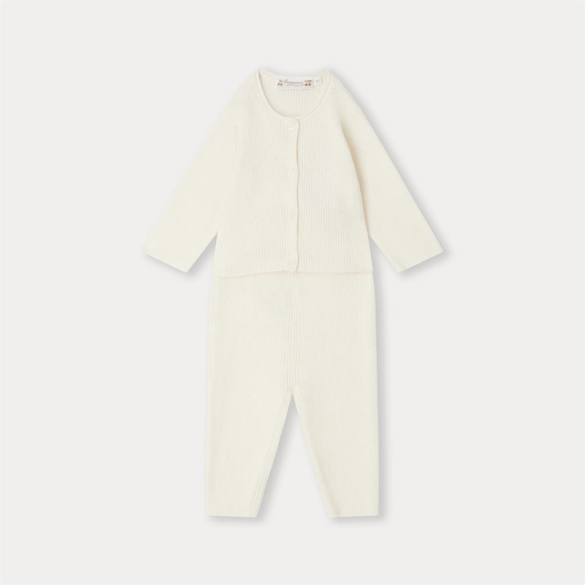 ゴムウエストのパンツとボタン付きのトップスのベビーセット。オーガニックコットンをふんだんに使用したデザインは、小さなお子さまにも快適な着心地です。