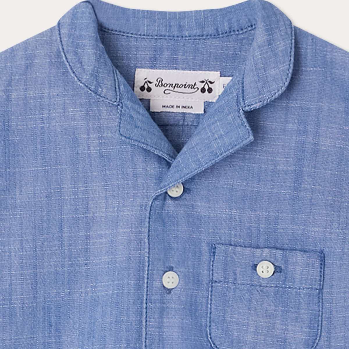 ワードローブの定番となる無地のベビー用シャツ。オーガニック認証コットンを使用し、着心地のよいストレートカットで仕上げました。