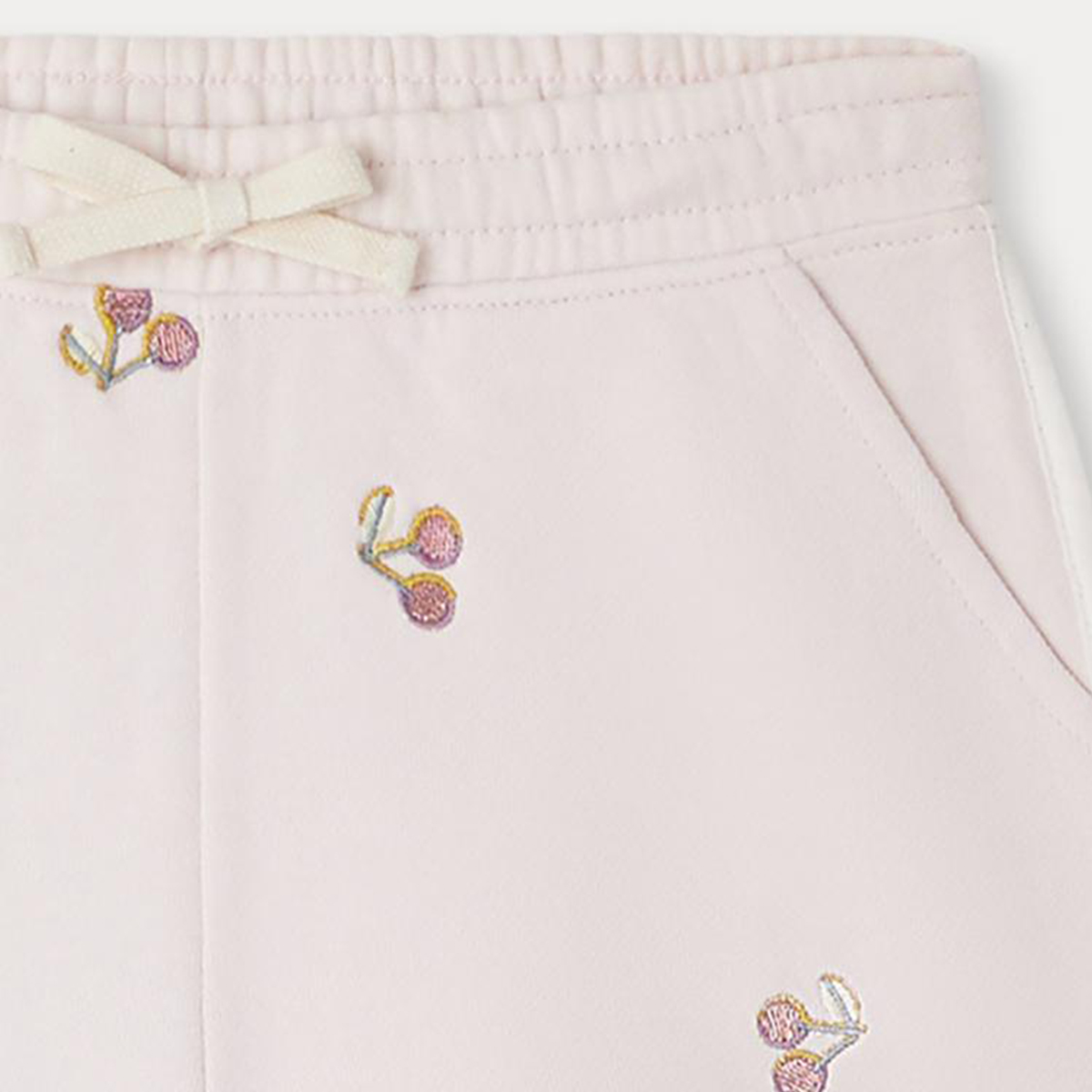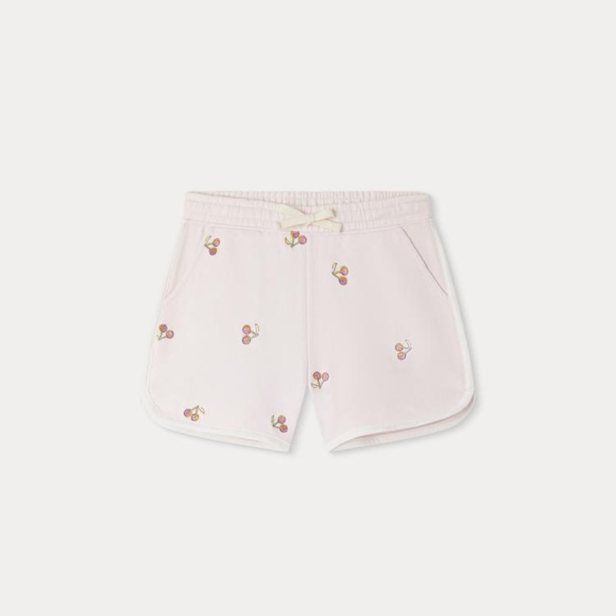 オーガニックコットン・フリースを使用した、着心地抜群のスウェットショートパンツ。メタリック糸で刺繍されたチェリーが目を引きます。 セットアップでもお楽しみいただけます。