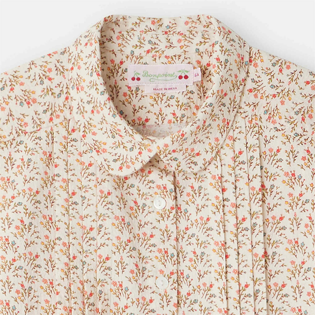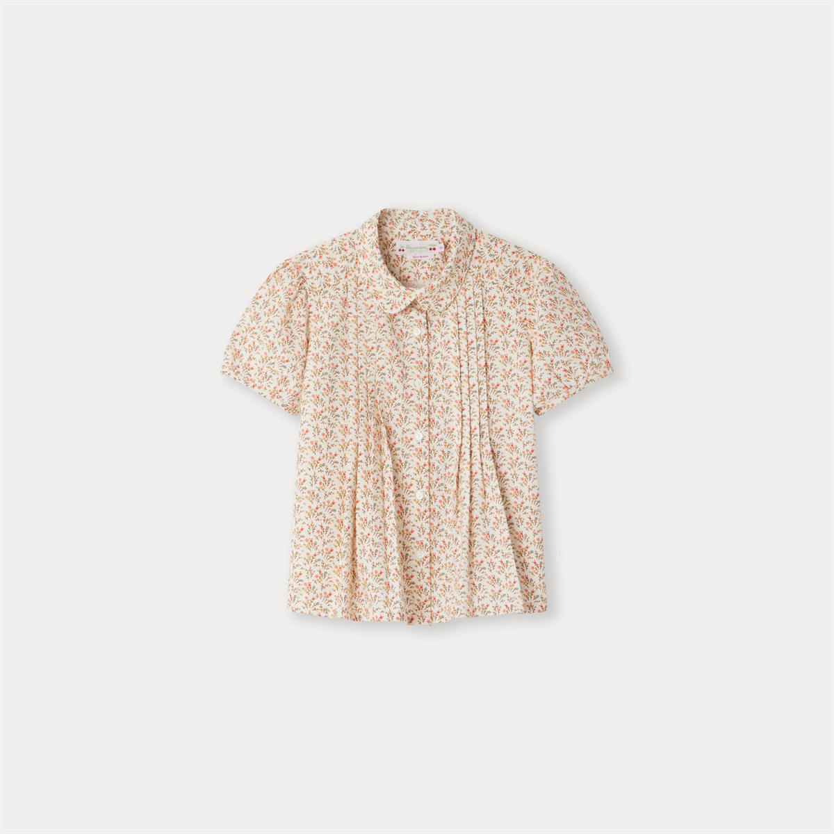 可憐な小花の総柄プリントが特徴のブラウス。胸元のフラットプリーツが動きをプラスします。