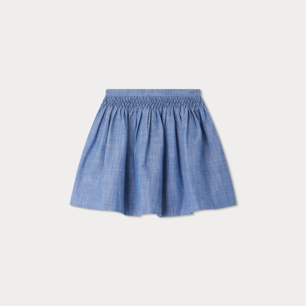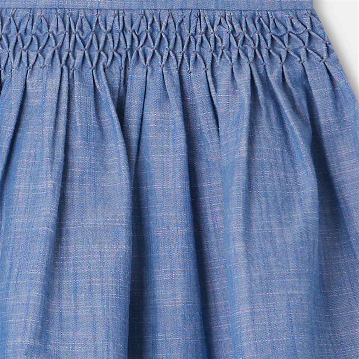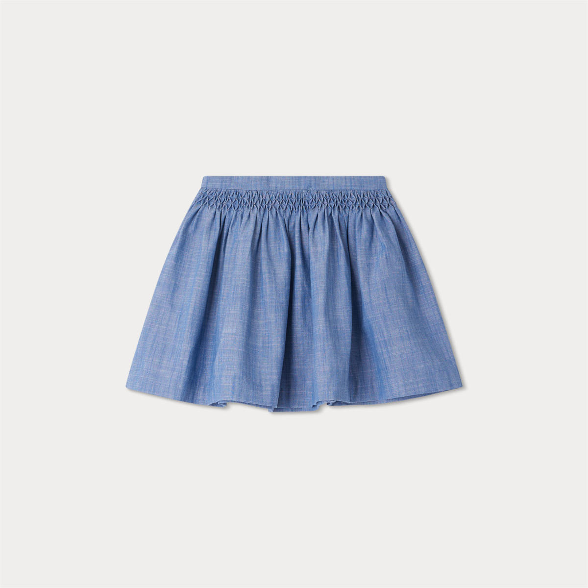 オーガニックコットンを使用した、シルエットが愛らしいスカート。ウエストバンドにはエレガントな手刺繍のスモッキングが施され、プリーツを強調します。