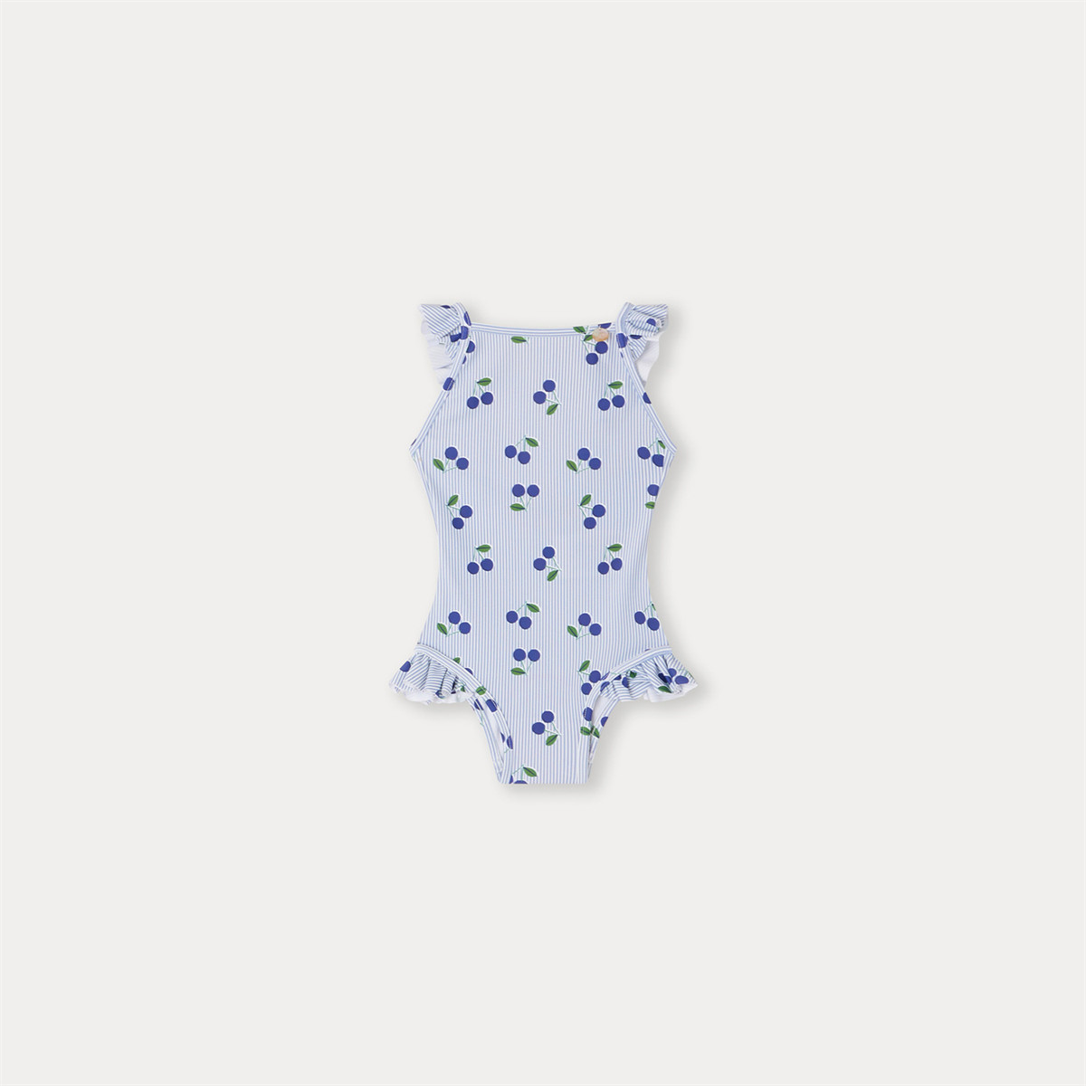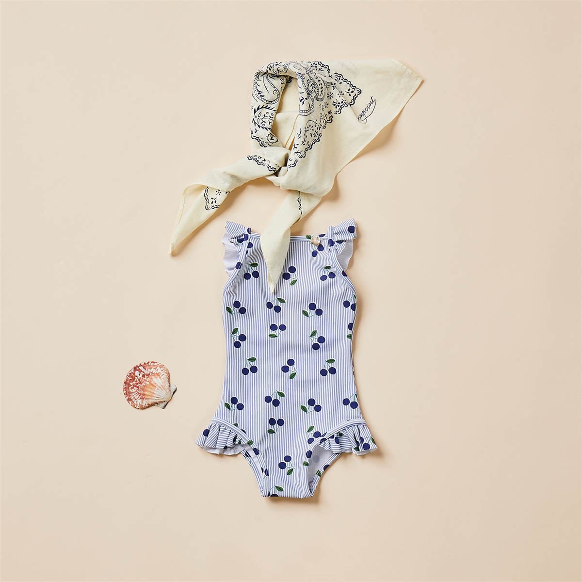 フリルとグラフィックデザインのディテールをふんだんにあしらったベビー用水着。