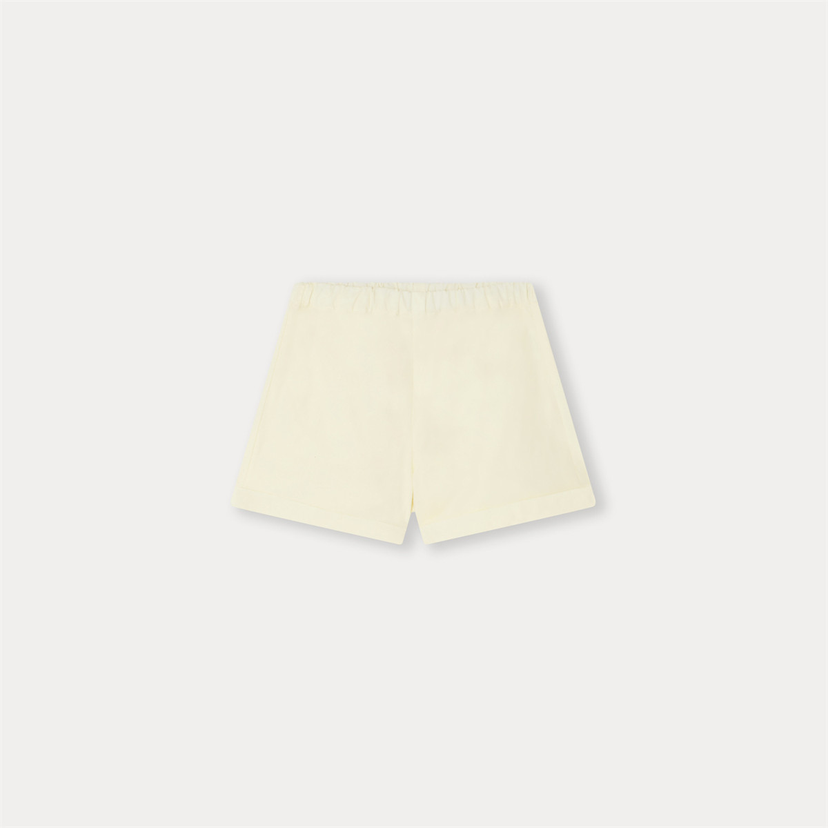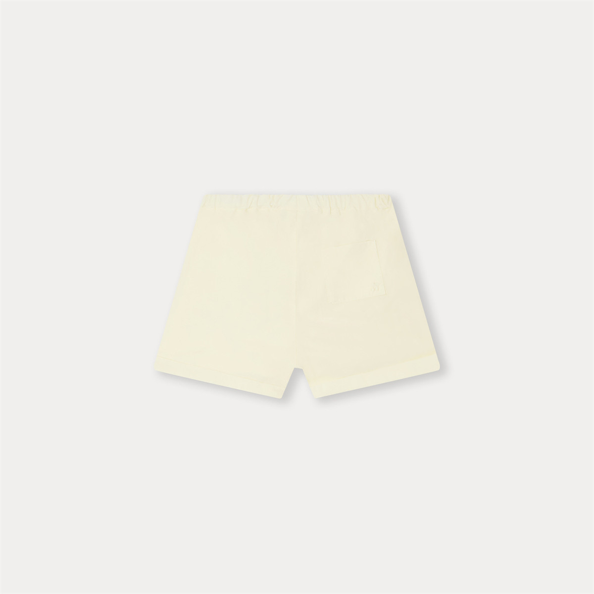 オーバーダイ加工を施したオーガニックコットン・ポプリン製のベビー用キャンディ・ショーツ。伸縮性のあるウエストで履き心地も抜群です。