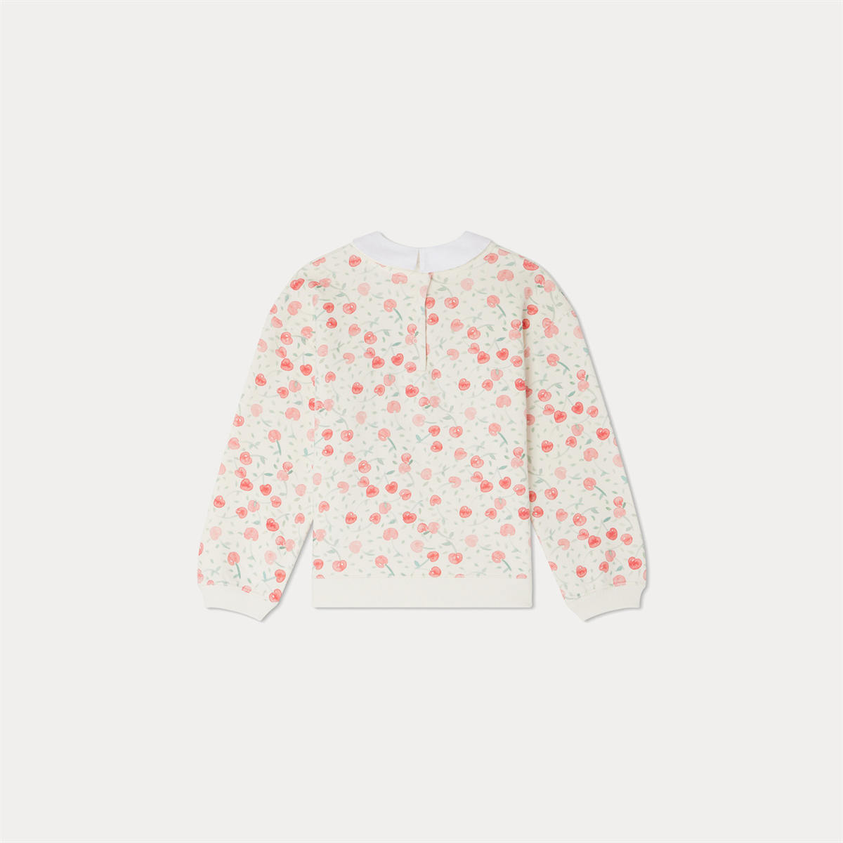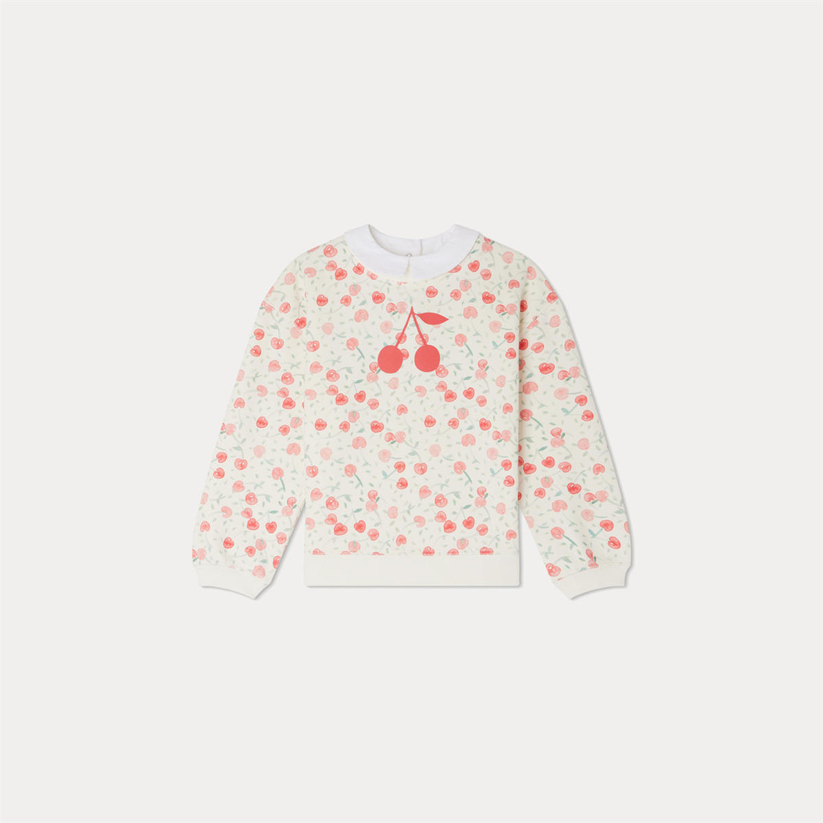 オーガニックコットン・フリースを使用したスウェットシャツ。チェリーのモチーフが全面にあしらわれています。