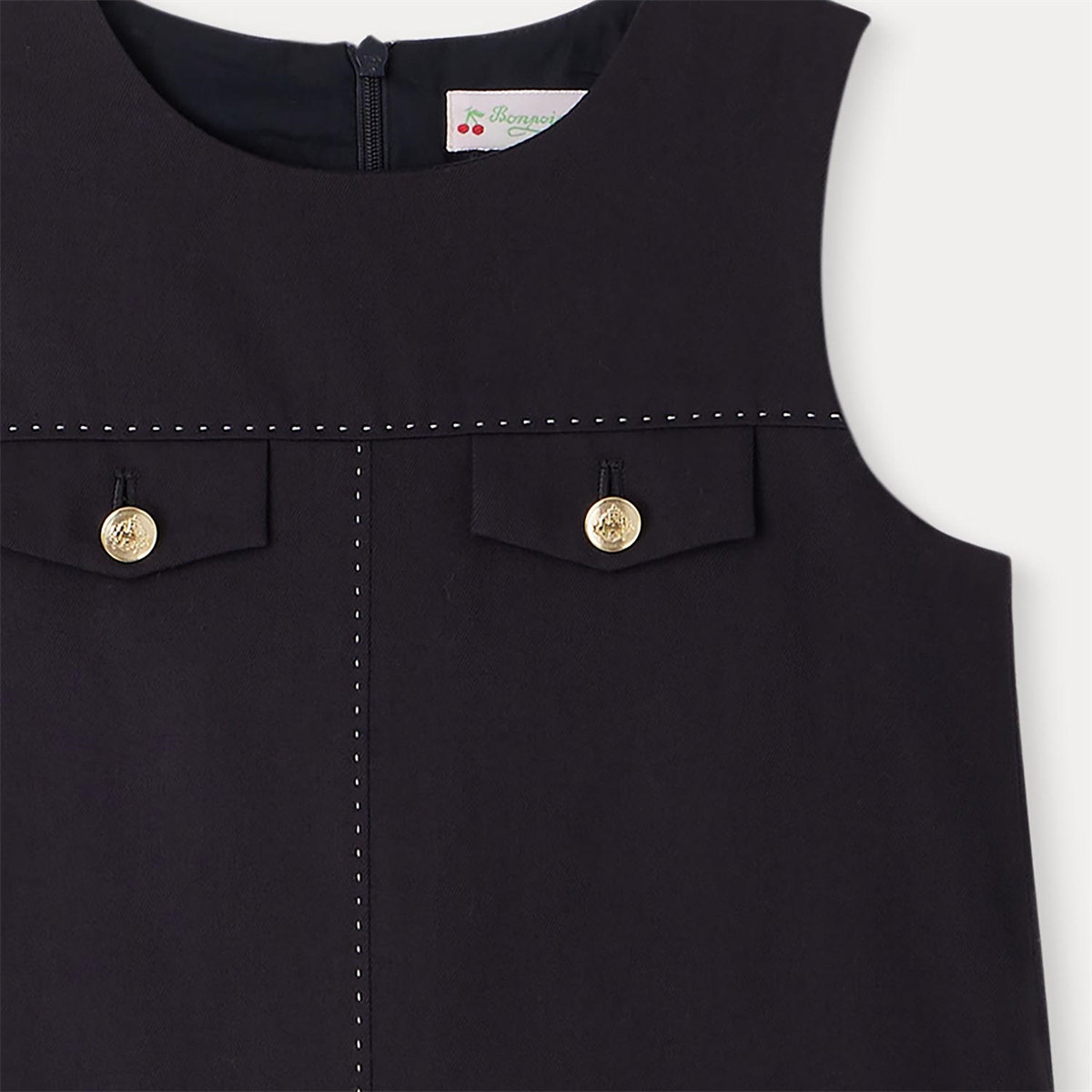 商品説明:コントラストの効いたトップステッチで強調されたパネリングが目を引くドレス。背面の隠しファスナーで開閉します。