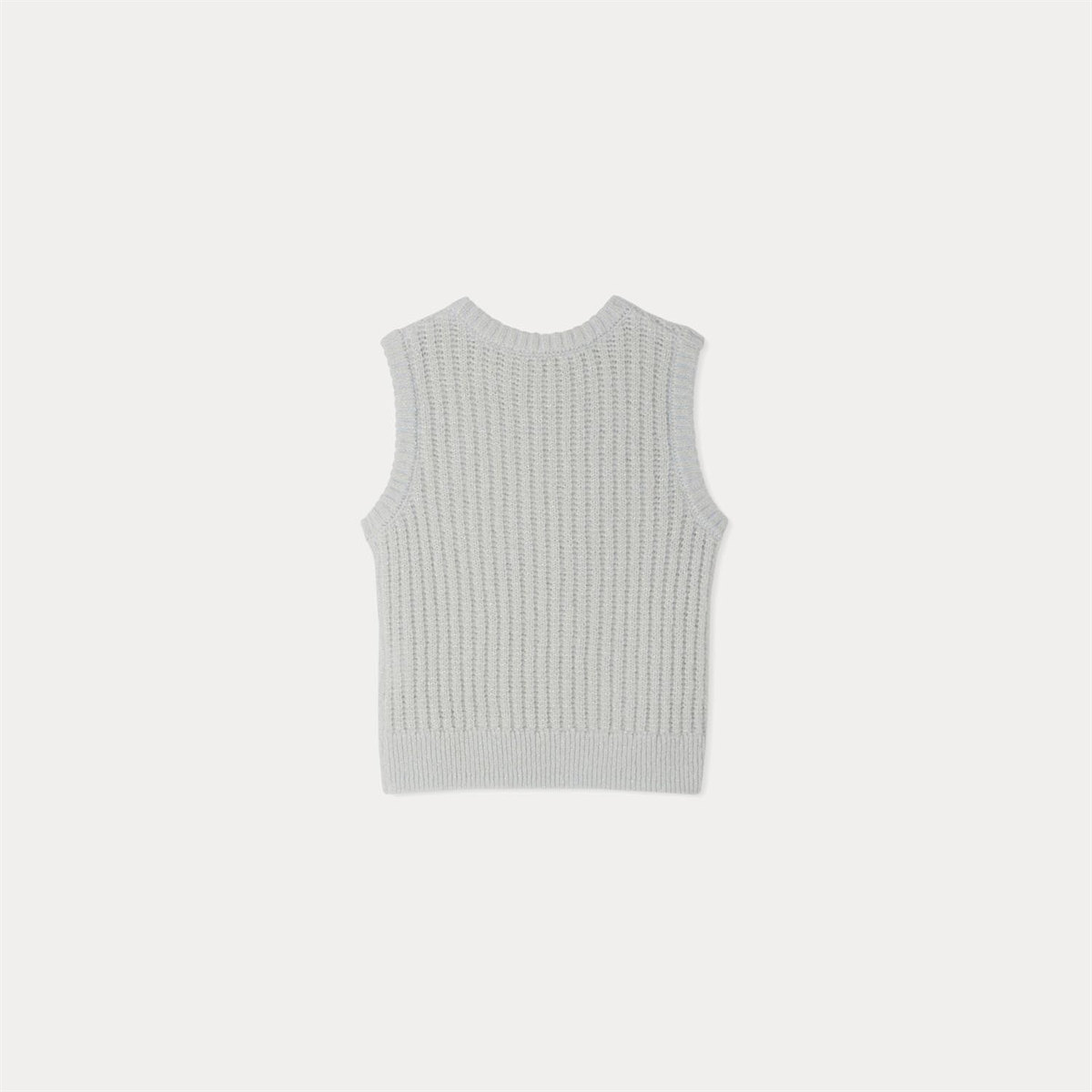 商品説明:メタリック糸でさりげなく華やかさを演出するベストは、柔らかくて丈夫なウール製で、敏感肌のお子さまにも気持ちよく着ていただける一枚。