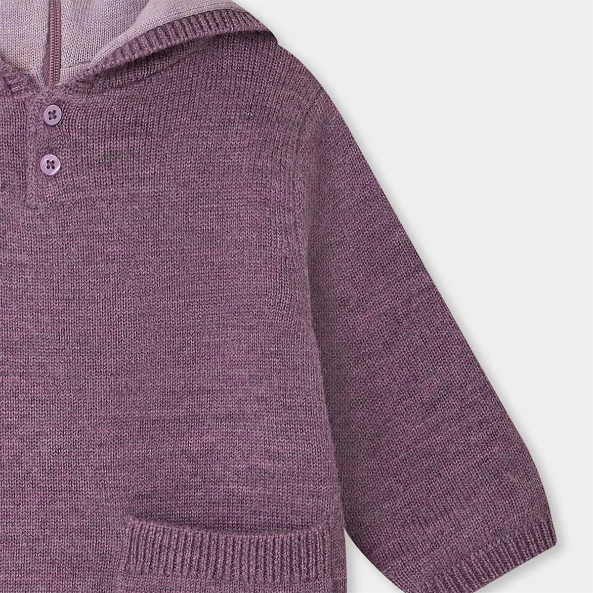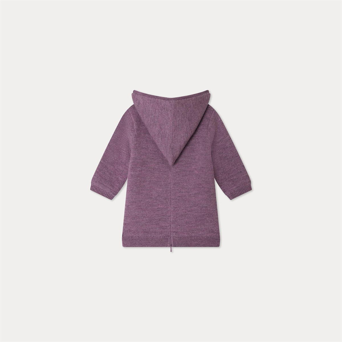 商品説明:ダブルニットのストッキングステッチで仕立てた長袖でフード付きのトップス。背中にはファスナーが付き、2つのパールボタンで留めるアイコニックなスタイル。