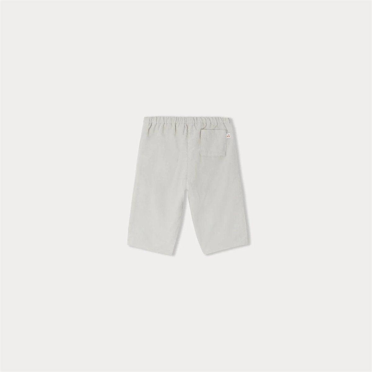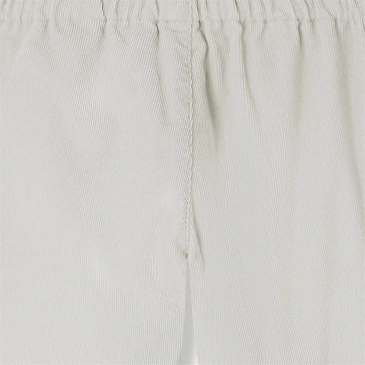 商品説明:無地のニードルコードで仕立てたベビーパンツは、ウエストゴムで着脱が簡単。メゾンのアイコニックなデザインのバックポケットにはチェリーのラベルが付いています。