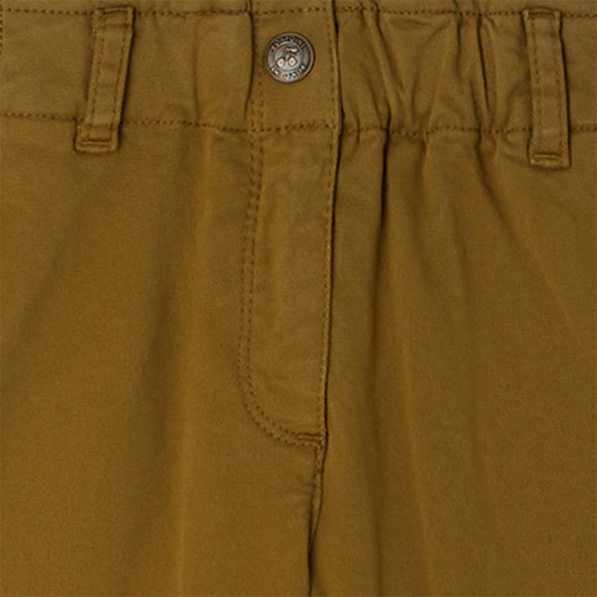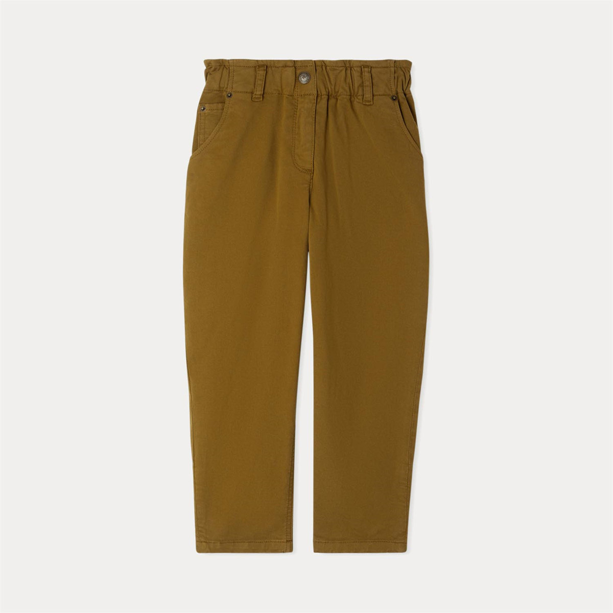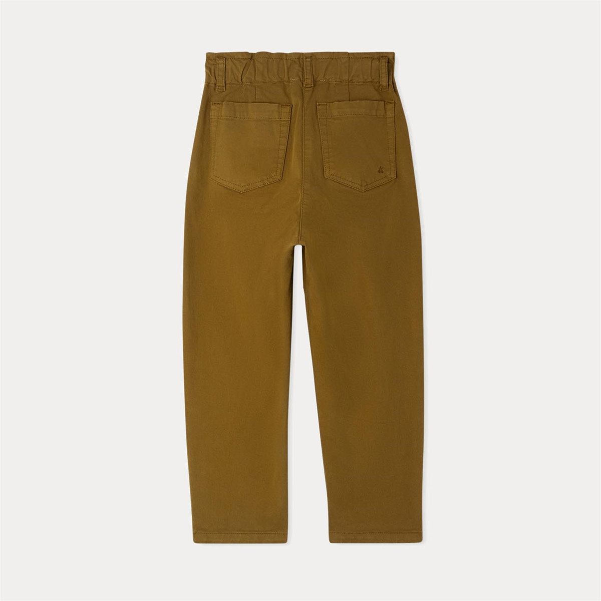 オーガニックコットンのパンツ。伸縮性のあるペーパーバッグウエストが現代的な印象をプラスします。
