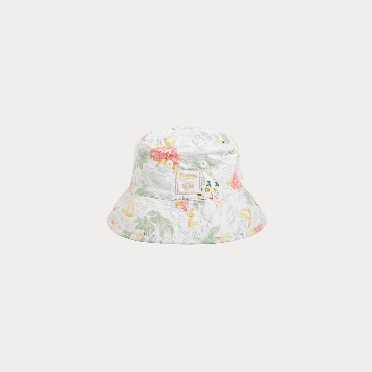 日差しを遮ると同時に、着こなしにユニークなタッチを加えてくれるバケットハット。オーガニックコットン・ポプリン製。
