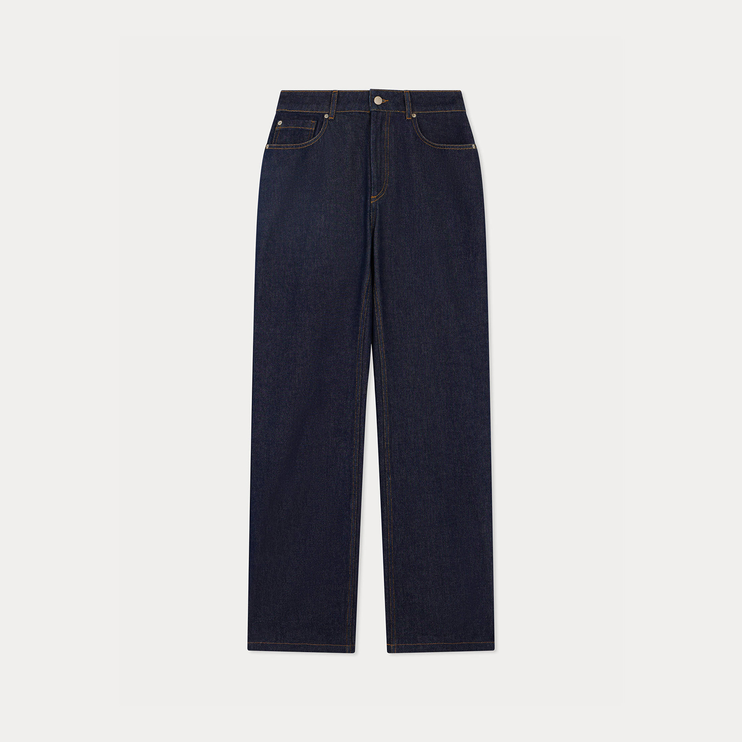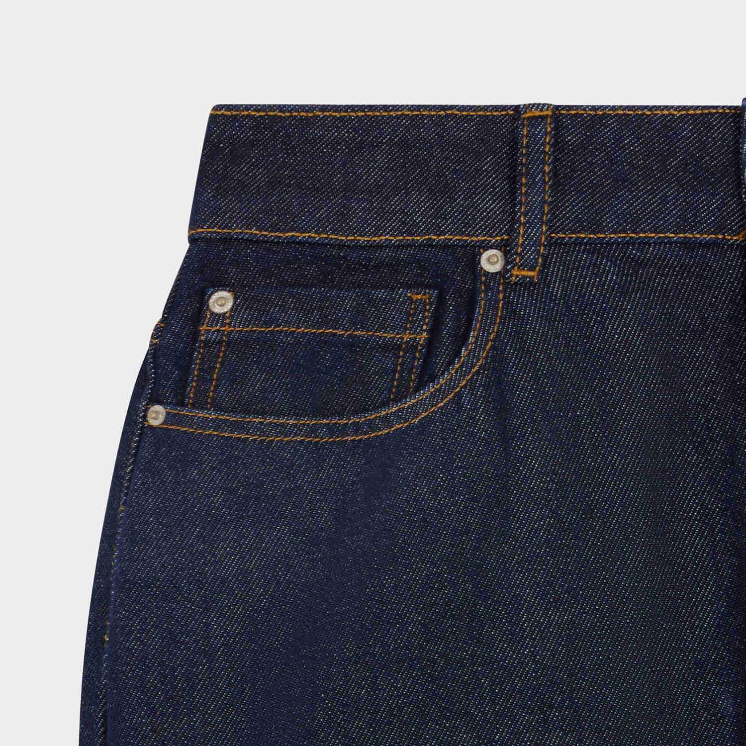 クラシックなストレートカットのデニムジーンズ。