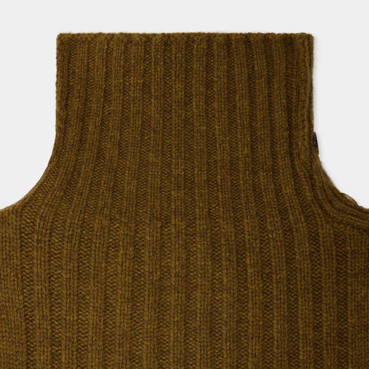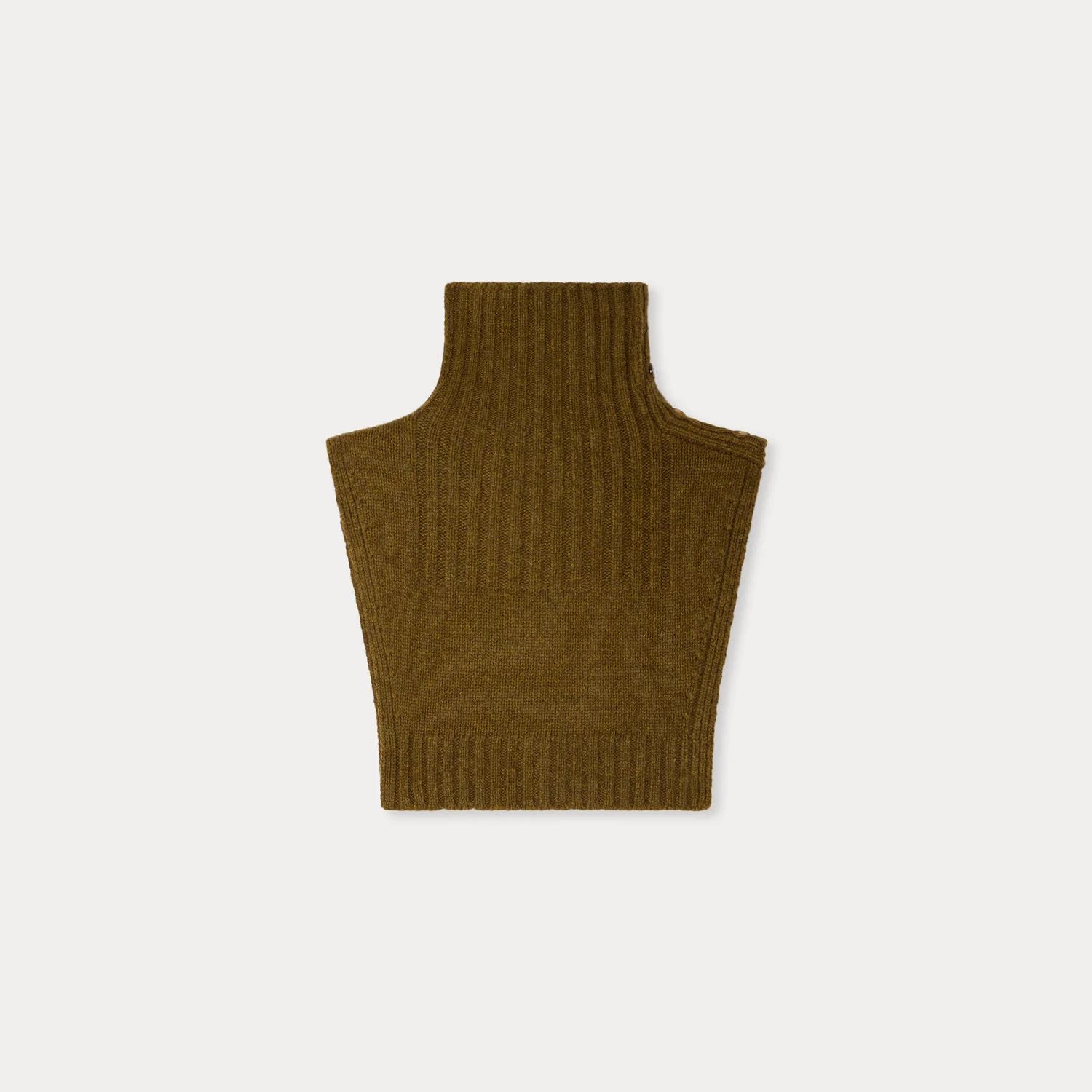ウールブレンド素材を使用し、肩にはボタン開閉付きの前立てを備えています。