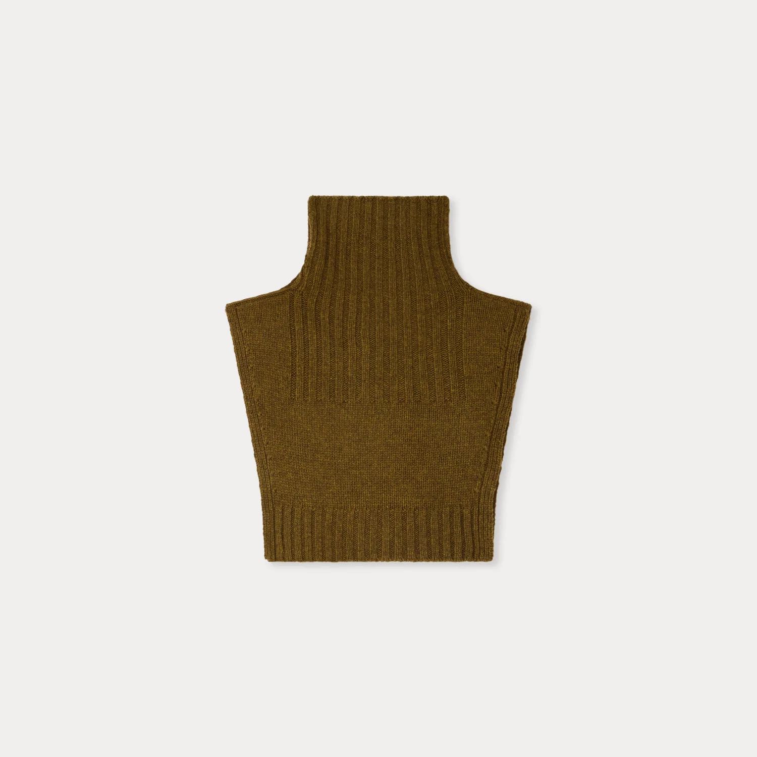 タートルネックで、背中の中ほどまで覆うデザイン。