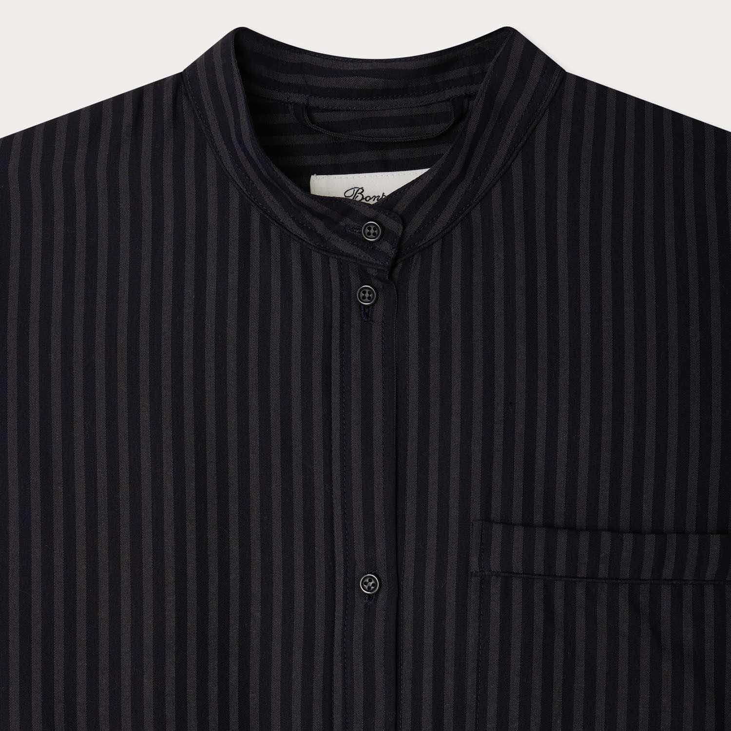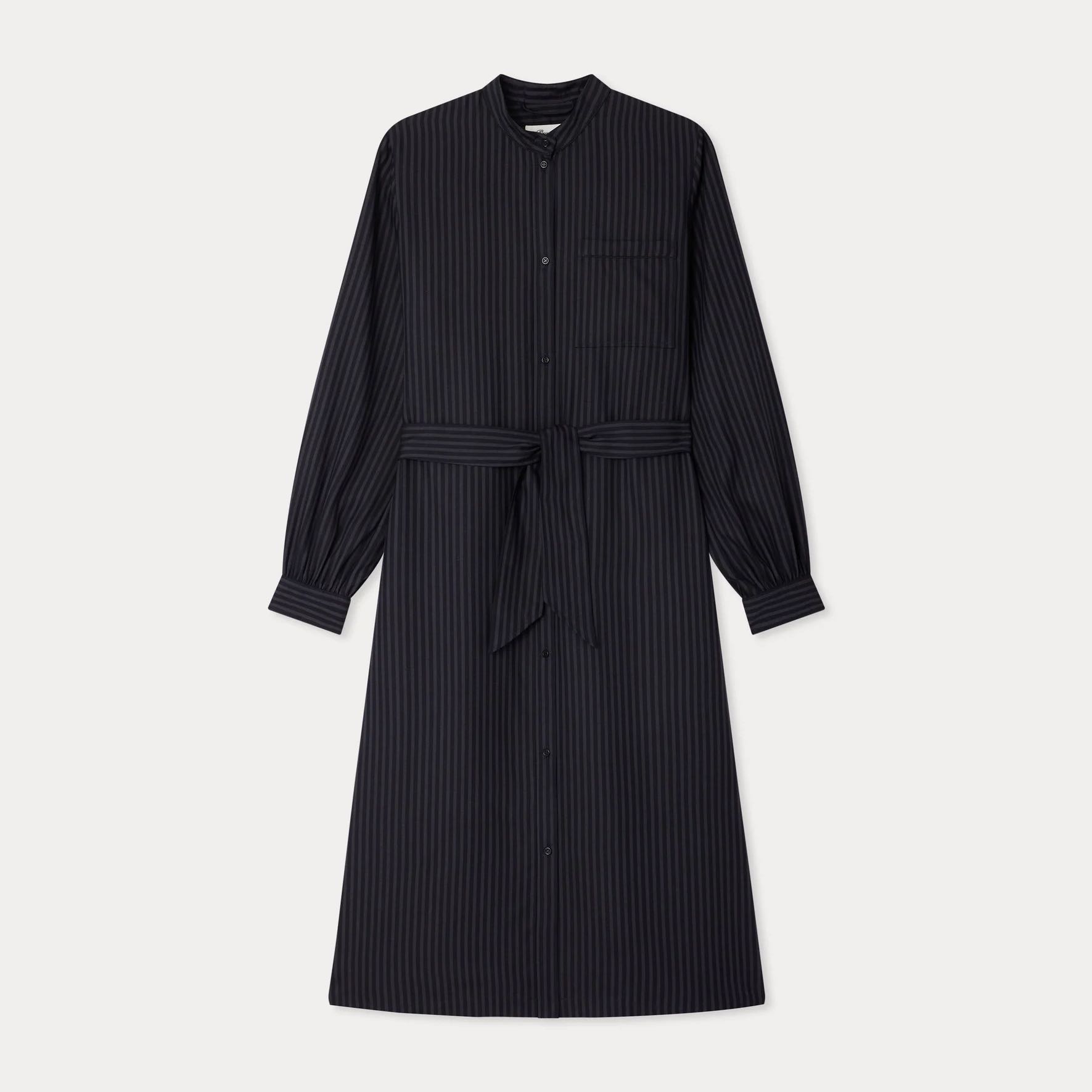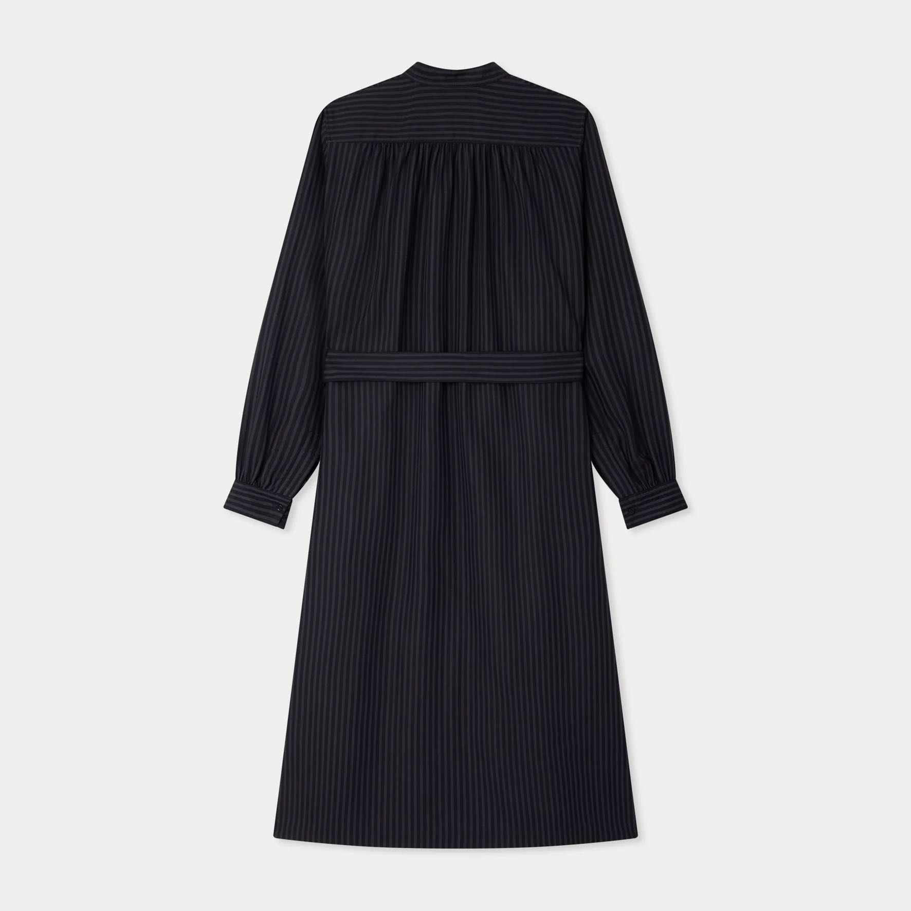 テンセル™を使用した、サステナブルで上品なストライプ柄のシャツドレス。