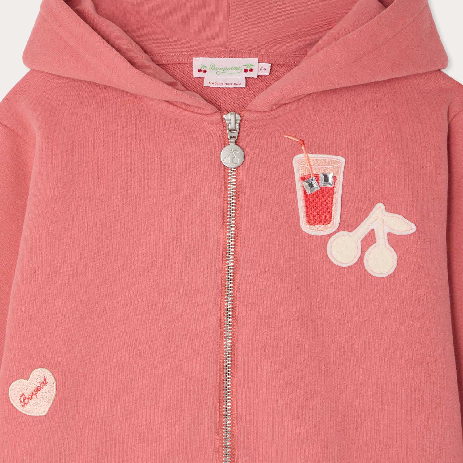 鮮やかなカラーのオーガニックコットンフリースを使用したフーディ。フロントには、オリジナルでアイコニックな刺繍パッチをあしらいました。--・オーガニックコットン-・チェリーモチーフの引き手付きジッパー留め-・サイドポケット