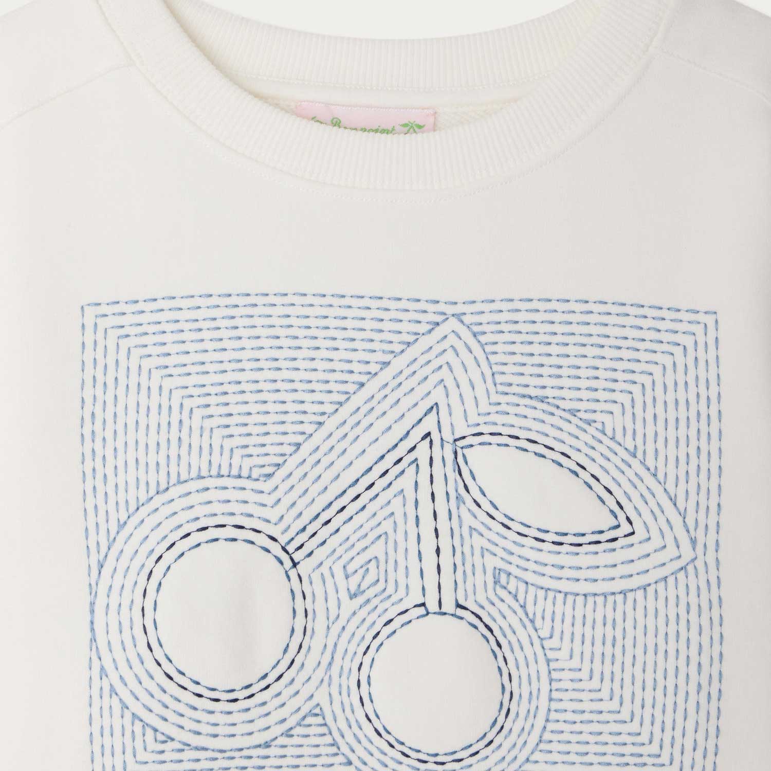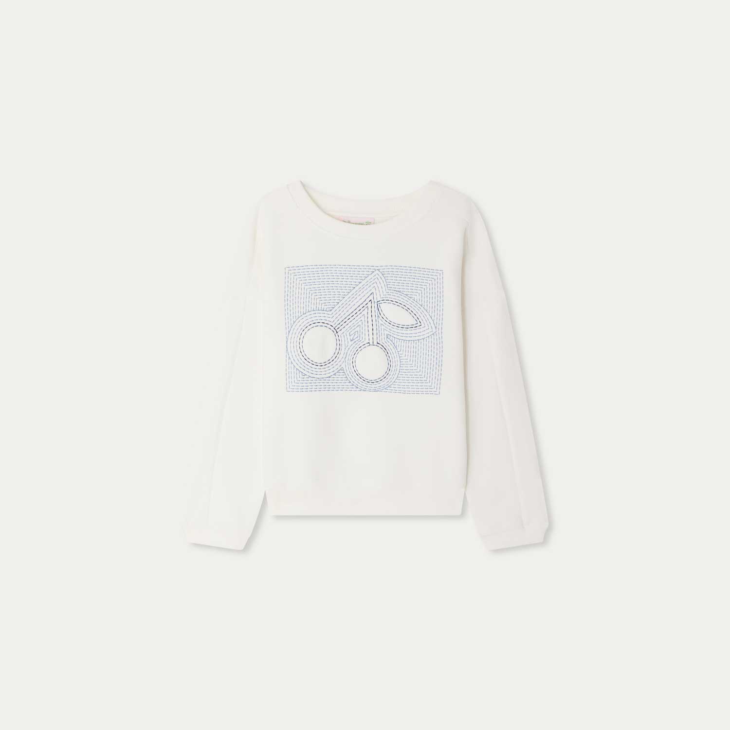 フロントに、トップステッチ風の大きなチェリー刺繍をあしらったスウェットシャツ。非常にやわらかなオーガニックコットンフリース素材を使用しています。--・オーガニックコットン-・ラウンドカラー-・リブ仕様の襟と袖口