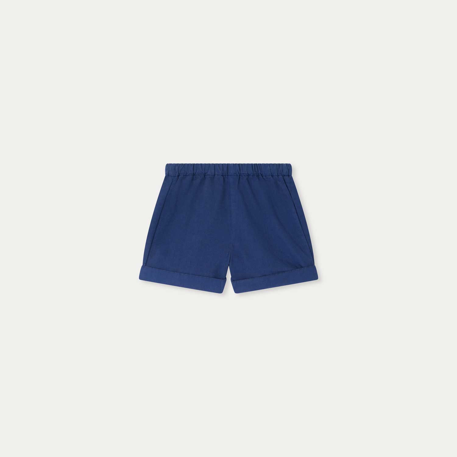 深みのあるカラーが魅力の、オーバーダイ仕上げのオーガニックコットンポプリンでつくられたベビーショーツ。