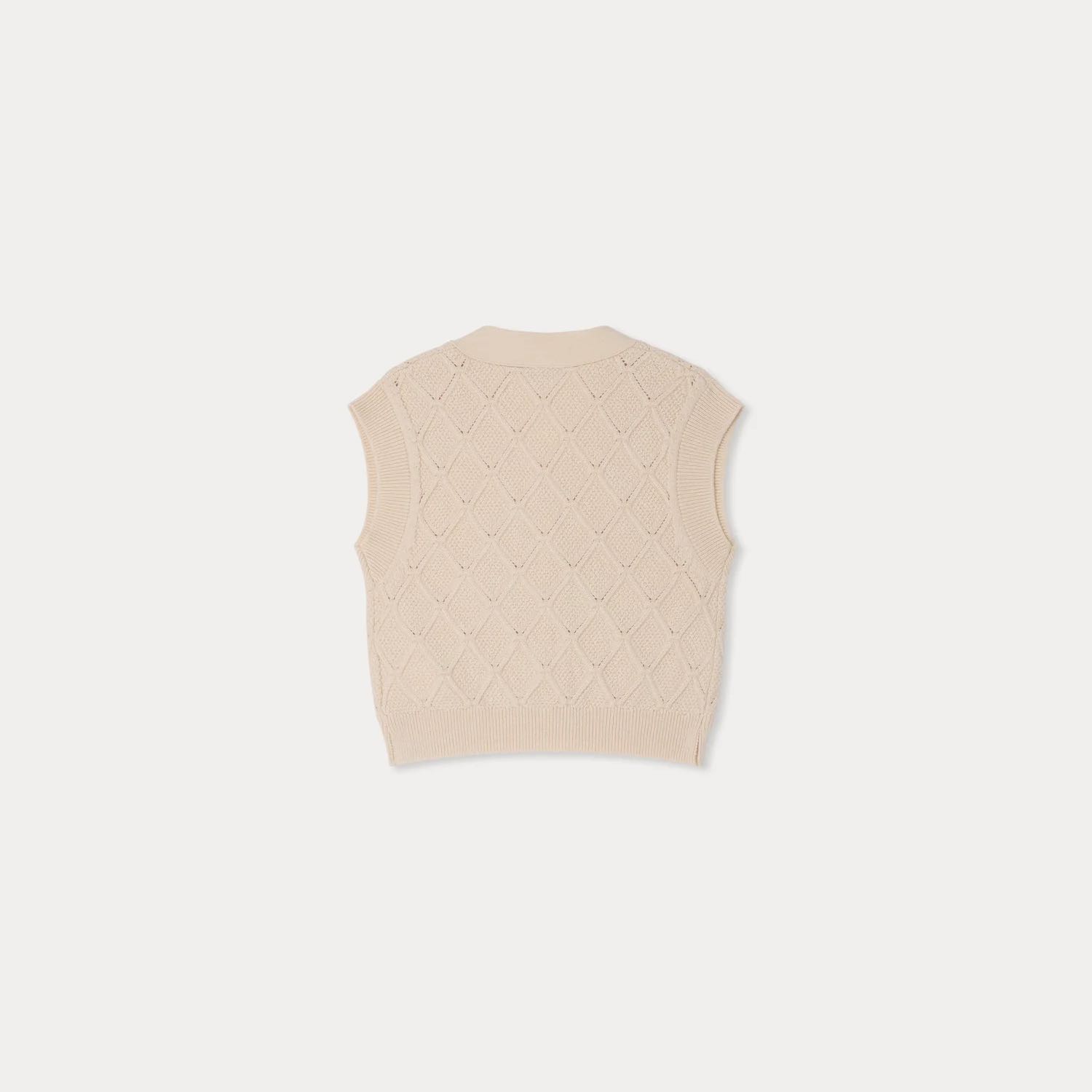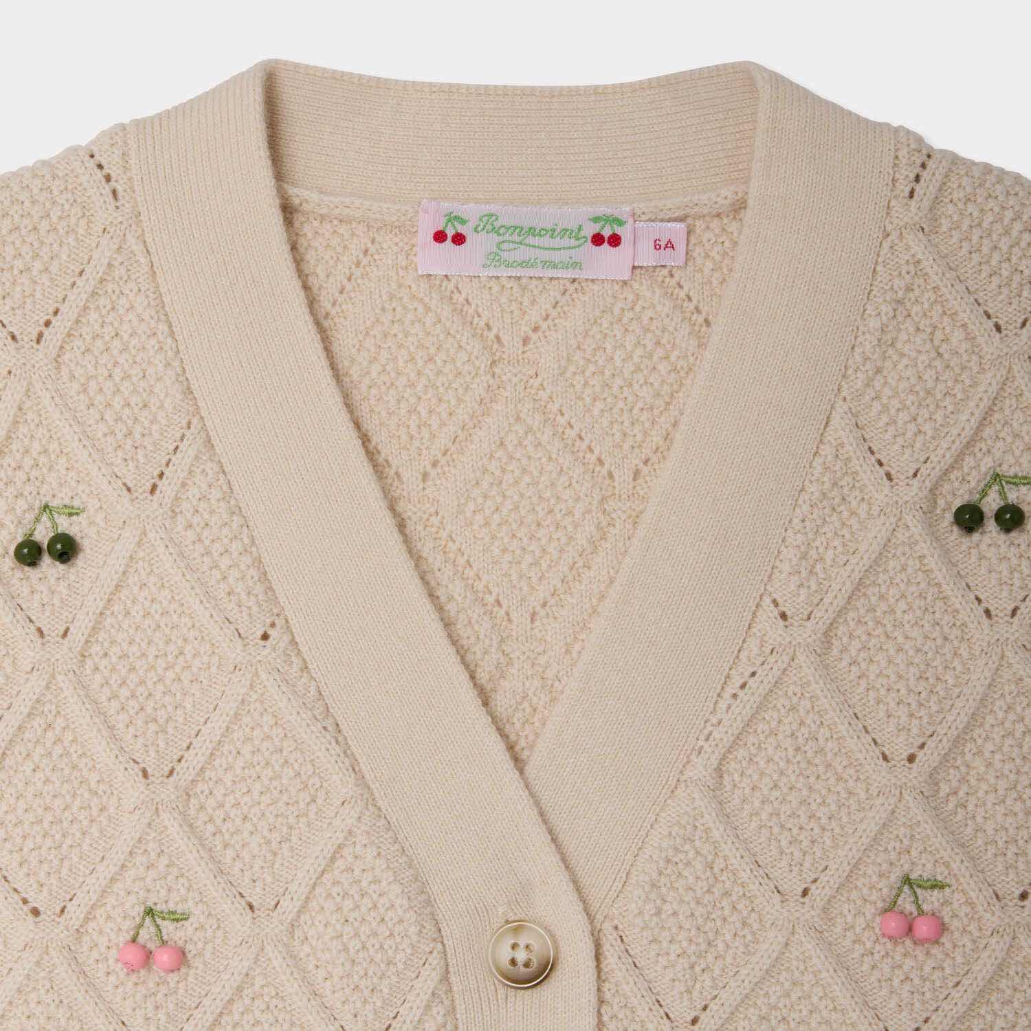遊び心のあるダイヤモンド編みで仕立てられた、カーディガン。