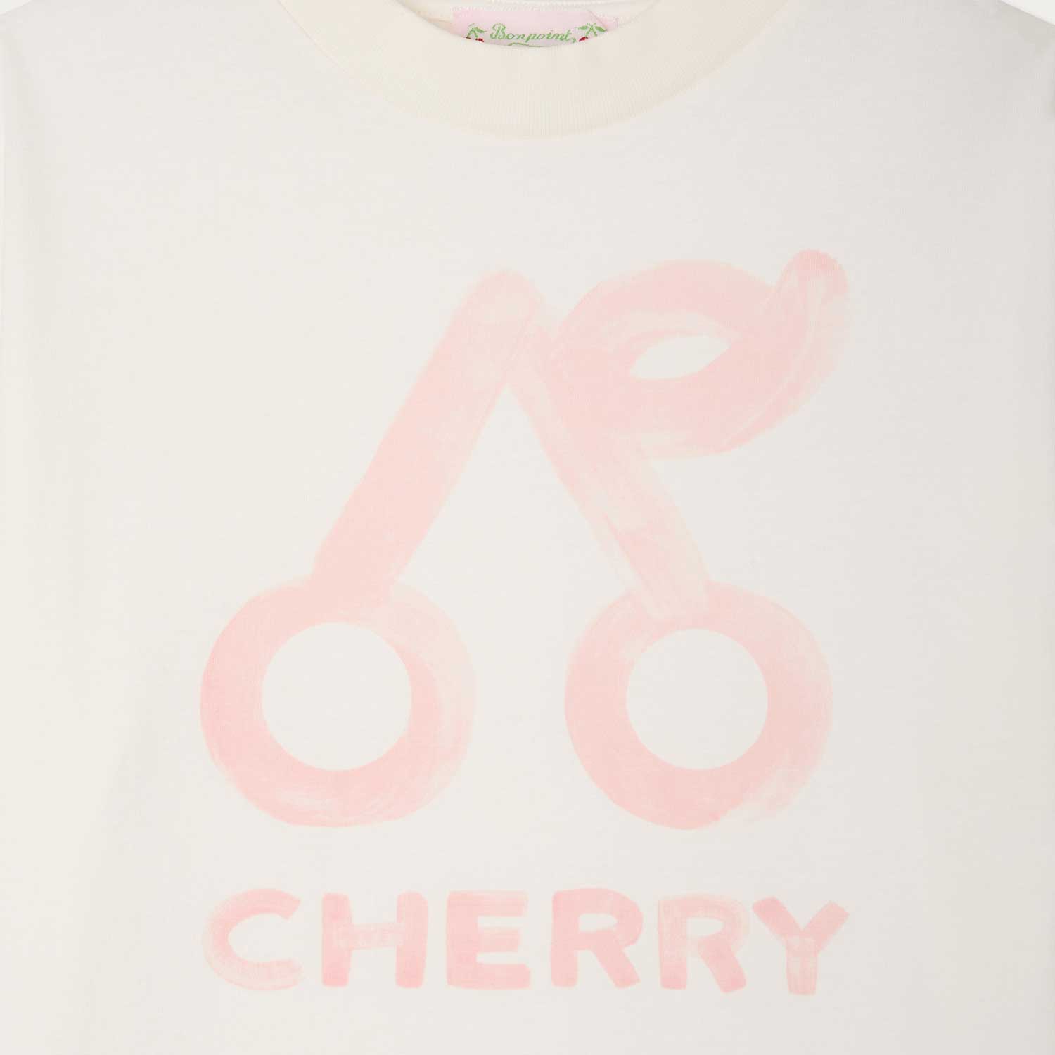 フロントに、水彩画風の大きなチェリープリントをあしらったTシャツ。クルーネックにドロップショルダーを組み合わせ、トレンド感のあるシルエットに仕上げています。