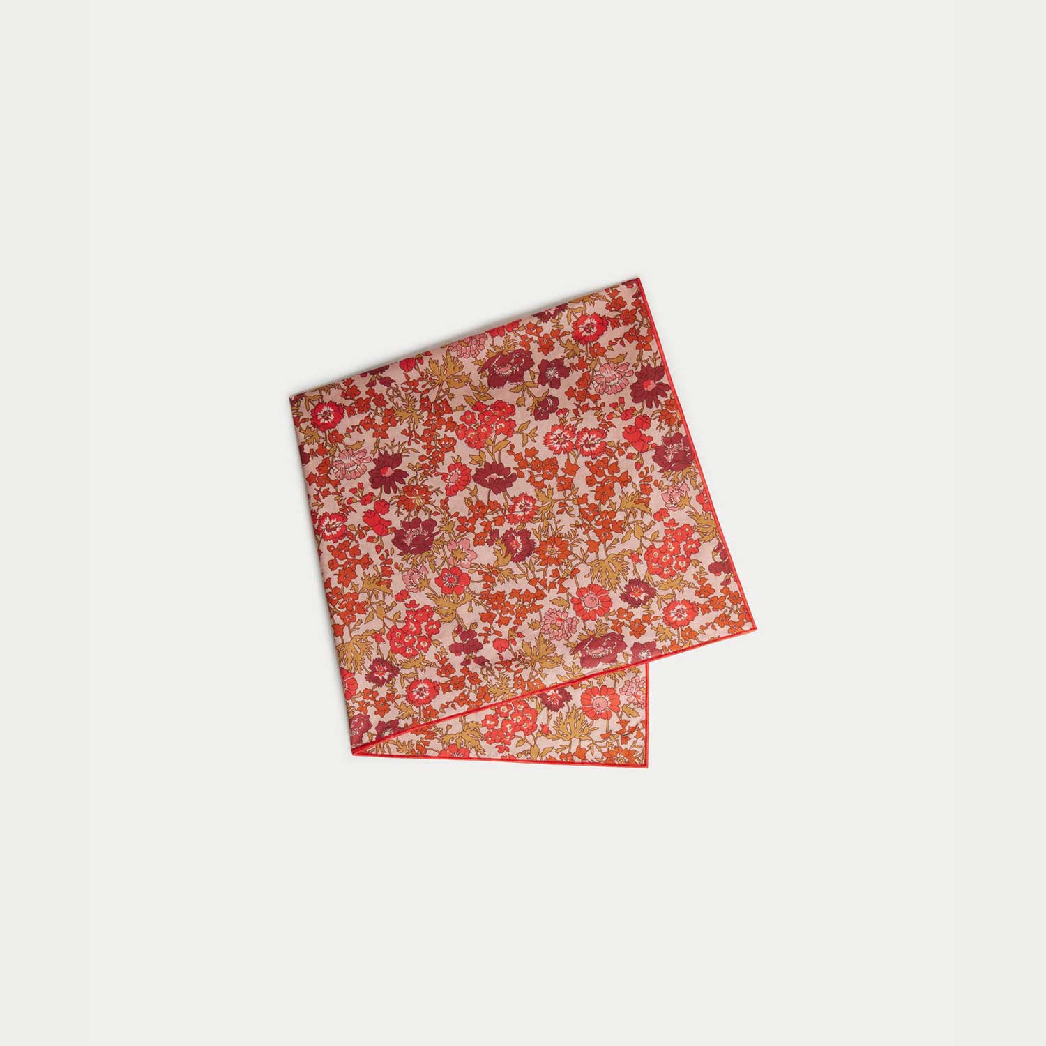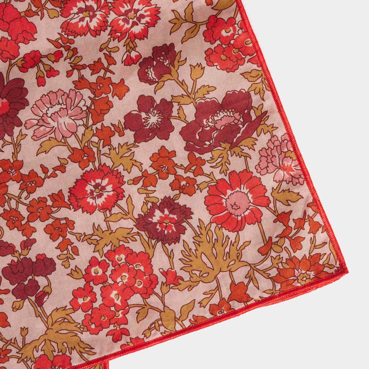 Bonpointを象徴するデザインのスクエアスカーフ。鮮やかな色彩のリバティファブリックを使用し、無地カラーの縁取りで仕上げています。