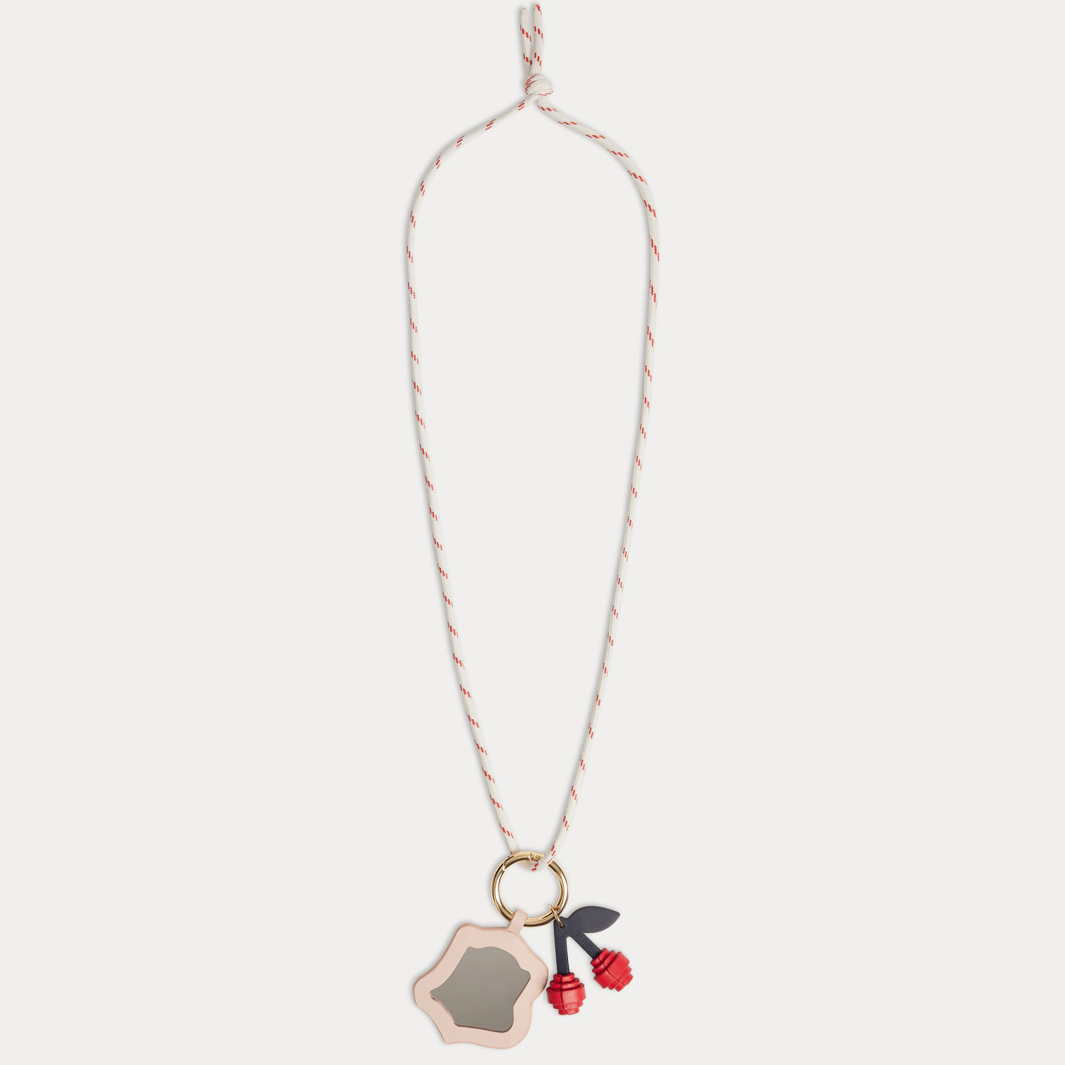 ボンポワンとメゾン キツネによるコラボレーションのレザーネックレス。フォックスとチェリーモチーフのチャームが愛らしくもアイコニックなアクセントに。フレックコードがほどよいトレンド感を添え、コーディネートに軽やかな個性をプラスします。